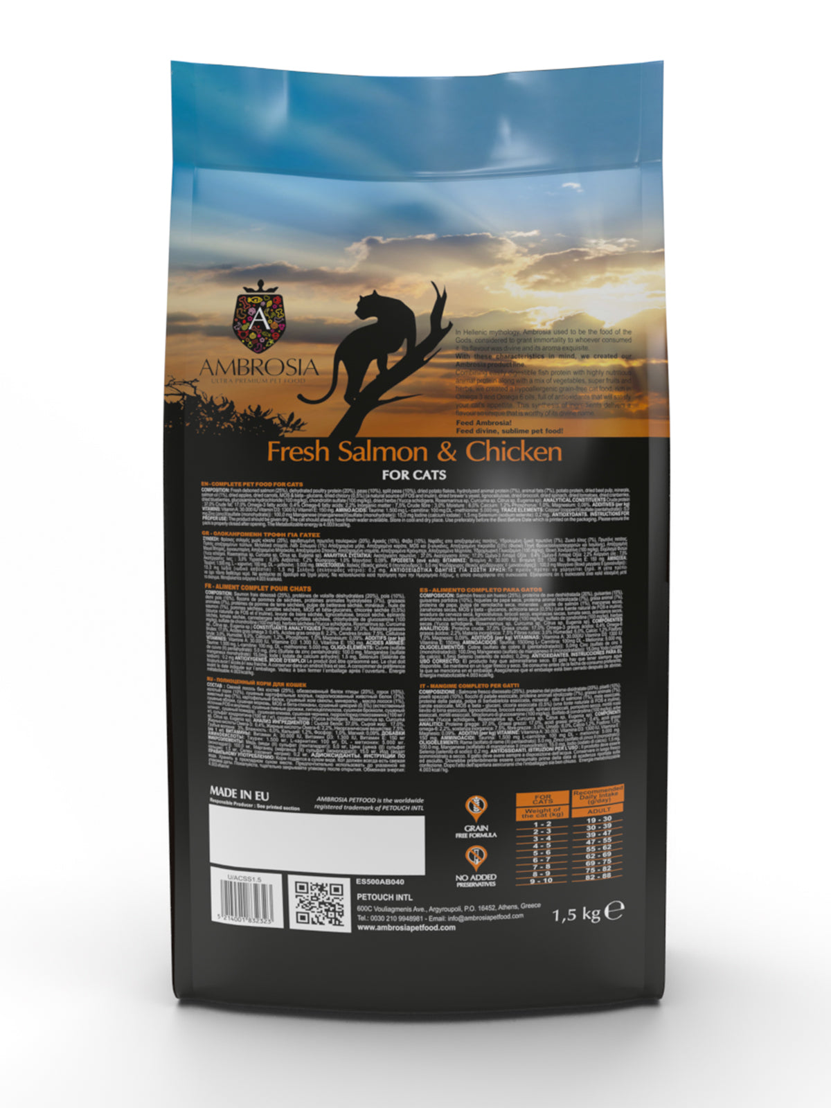 Ambrosia Cat Adult/Sterilised за Пораснали и Кастрирани Котки над 1 година със Сьомга и Пиле 1.5 кг / 5 кг