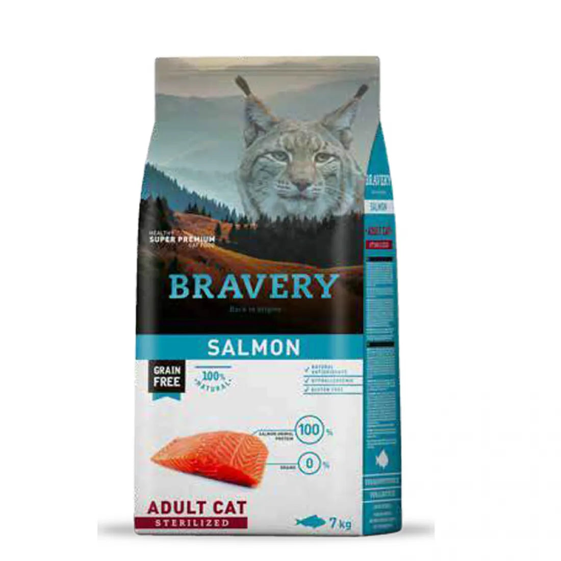 Bravery Sterilised Adult Cat Salmon – Беззърнена супер премиум храна със сьомга за израснали котки от всички породи