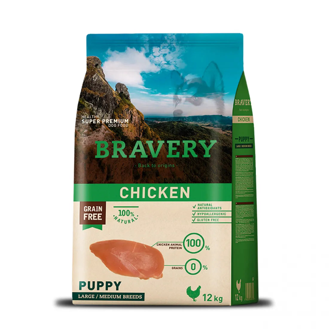 Беззърнена супер премиум храна с пилешко месо за подрастващи кученца от средни и едри породи. Изцяло натурална, хипоалергенна формула без изкуствени добавки. Съдържа висококачествени протеини за здрави мускули и кости, витамини и минерали за силен имунитет и нервна система.