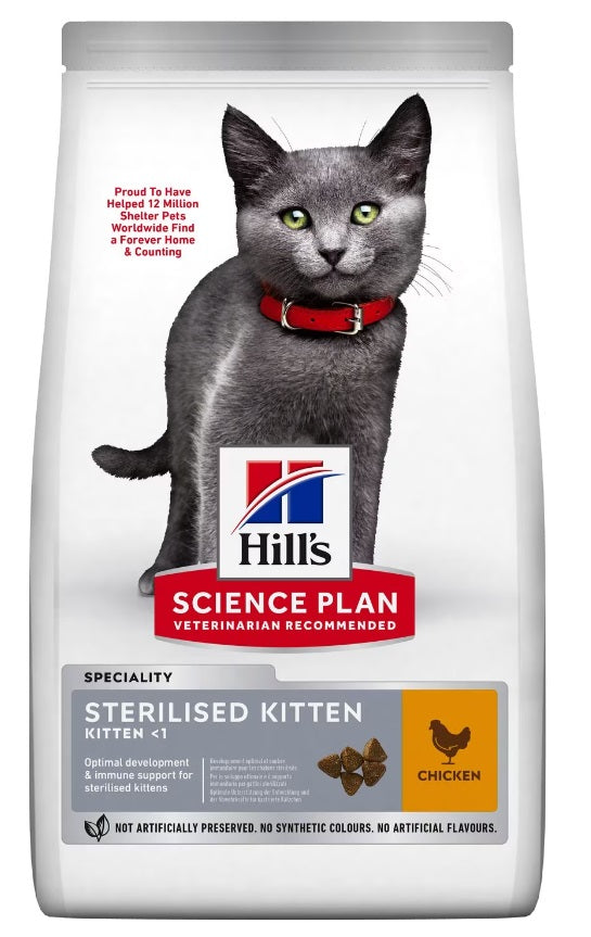 HILL'S SCIENCE PLAN Sterilised Kitten е вкусна, пълноценна и балансирана храна за кастрирани котенца, която осигурява оптимално развитие и здрава имунна система, за да могат те да получат най-добрия старт в живота и да достигнат пълния си потенциал.