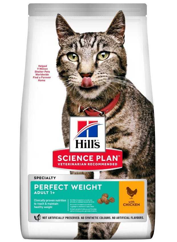 HILL'S SCIENCE PLAN Feline Adult Perfect Weight е суха храна за котки, която осигурява вкусно и иновативно хранене за достигане и поддържане на здравословно тегло с клинично доказана технология.