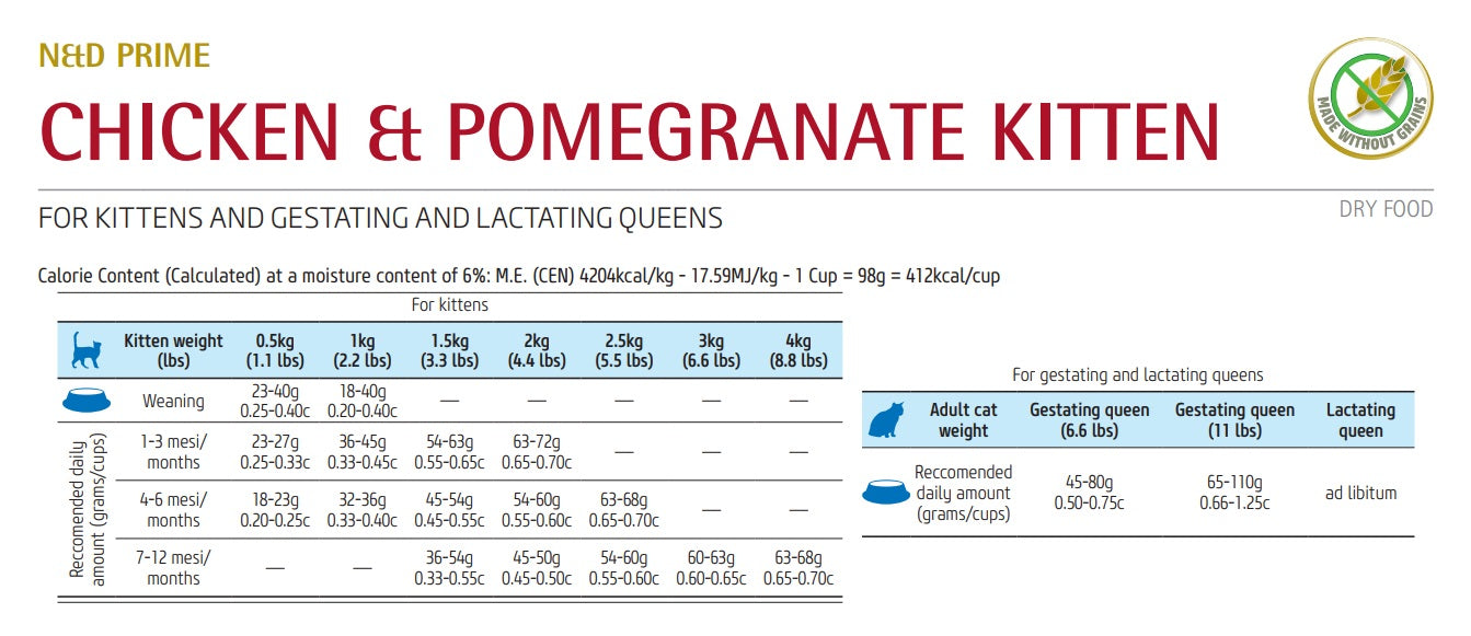 Farmina N&D Grain-Free Kitten е храна формулирана така че да отговаря на хранителните нужди, установени от AAFCO за всички етапи от живота на котката.