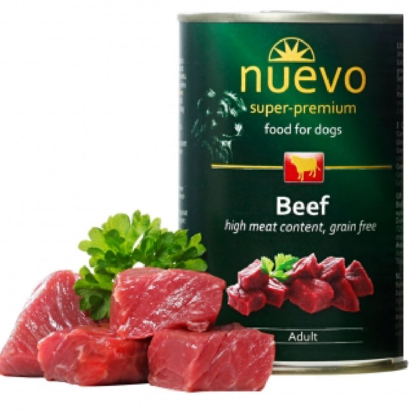 Nuevo Beef е немска консерва с висококачествена храна с говеждо месо за кучета. Нуево с Говеждо е богата на месо - цели 72%, съдържащи ценни протеини. Тази рецепта е перфектно балансирана и съдържа оптимални нива на всички необходими хранителни вещества, витамини и минерали. Тя представлява добър източник на енергия, лесносмилаема е и изключително вкусна.