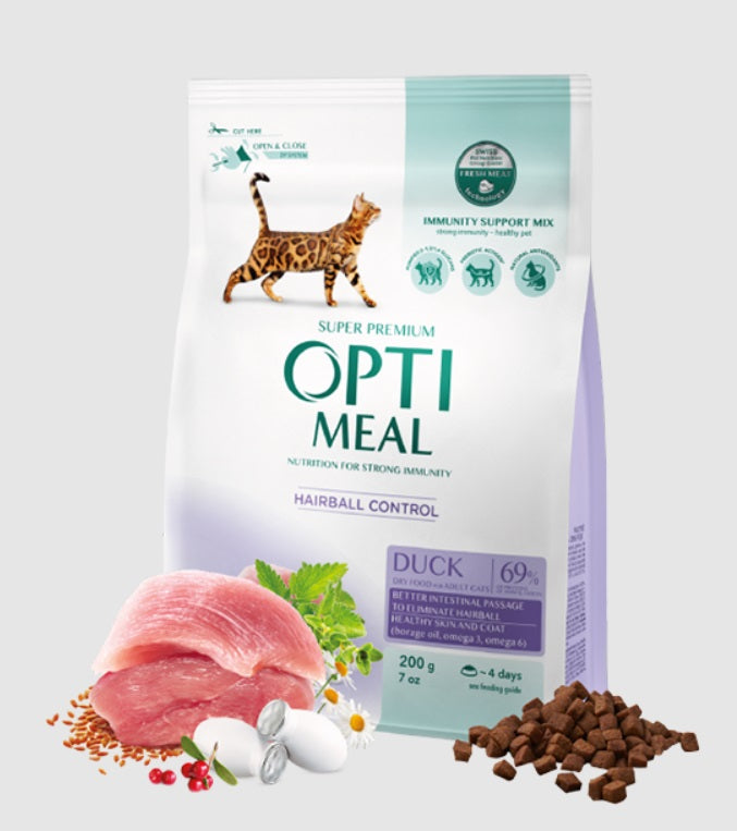 Opti Meal Cat Anti Hairball Duck - Храна за Котки с Патица против Космени Топки 1.5 кг / 4 кг / 10 кг