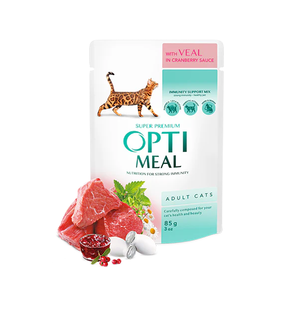 Opti Meal Pouch Adult Cat With Veal In Cranberry Sauce 3+1 Bonus - Пауч за Котки с Телешко в Сос от Червени Боровинки 340 г