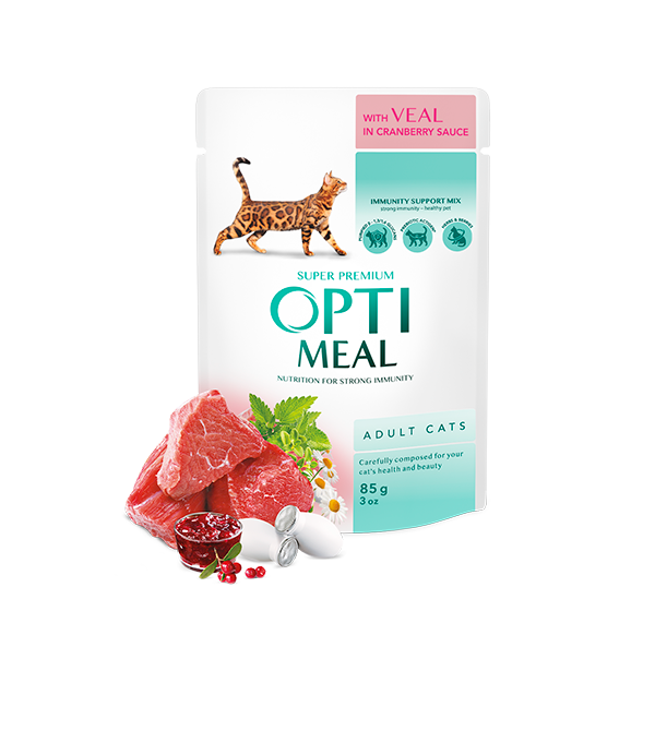Opti Meal Pouch Adult Cat With Veal In Cranberry Sauce - Пауч за Котки с Телешко в Сос от Червени Боровинки 85 г