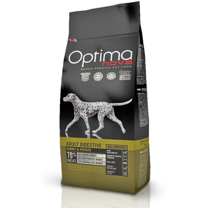 OPTIMA NOVA ADULT DIGESTIVE RABBIT&POTATO / ХРАНА ЗА ИЗРАСНАЛИ КУЧЕТА НАД 1 ГОДИНА С ЧУВСТВИТЕЛЕН СТОМАХ СЪС ЗАЕК 2 кг/12 кг
