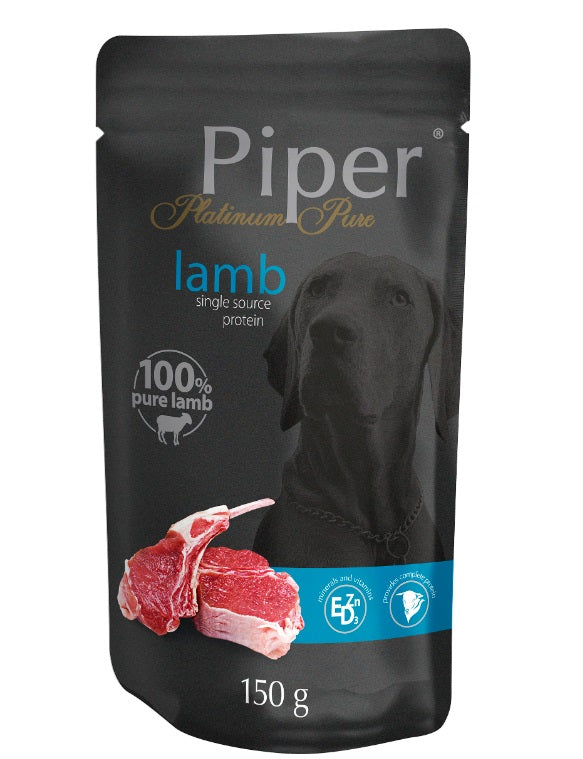 Piper Platinum паучове са средно-висок клас кучешка мокра храна от полската област Dolina Noteci, което е екологично чист район в Полша. Platinum вариантът е монопротеин, което означава, че е използвано само и единствено месо от посоченият вкус (агне или говеждо). Процентът месо е 65%. Комбинира мускулно месо и органи. Това, че е монопротеинова храна я прави подходяща за кучета с алергии или със съмнения за алергия.