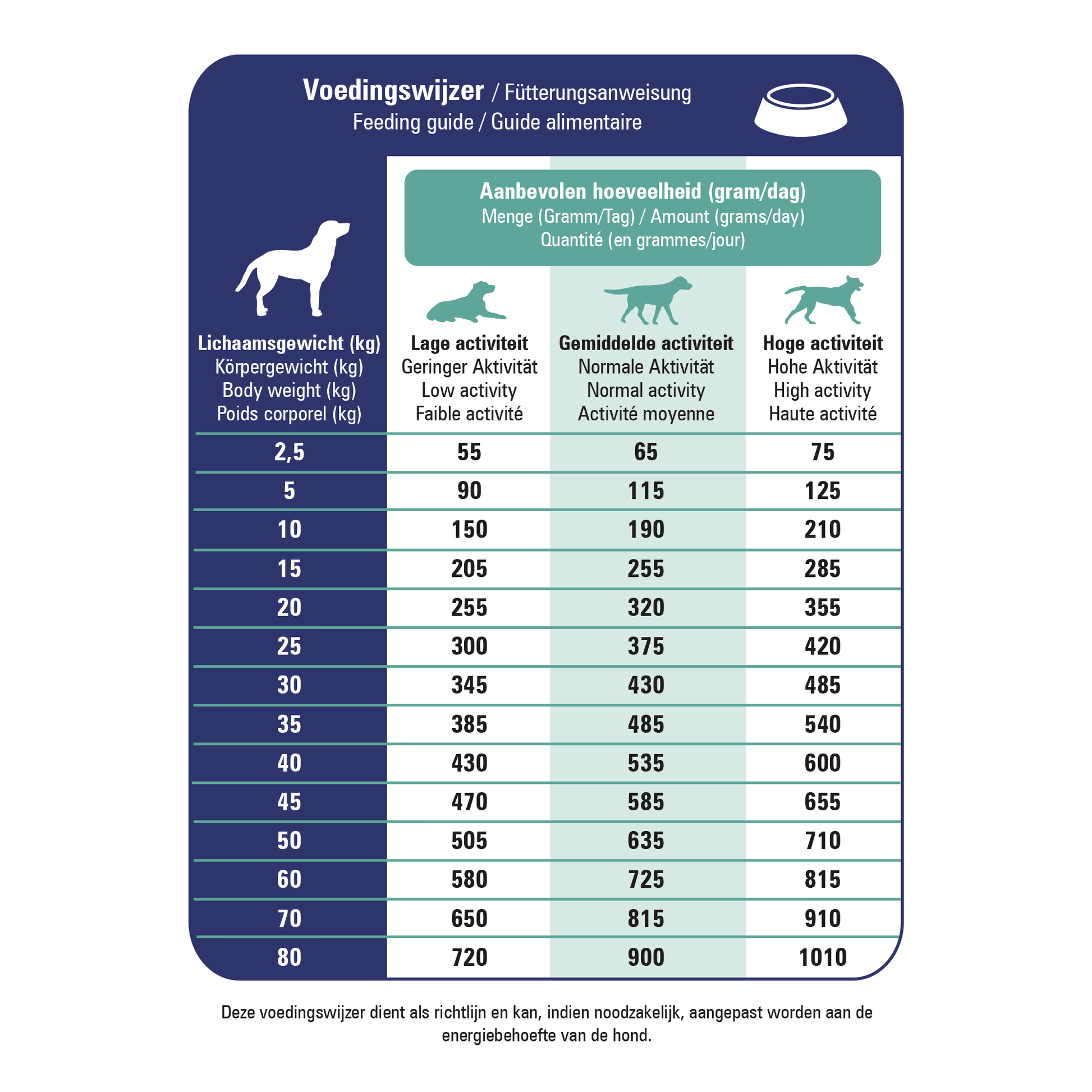 Подходяща за ежедневно хранене при кучета с нужда от нискомаслена диета. Разделяйте дневната порция на 2–3 хранения. Осигурете постоянен достъп до прясна вода.