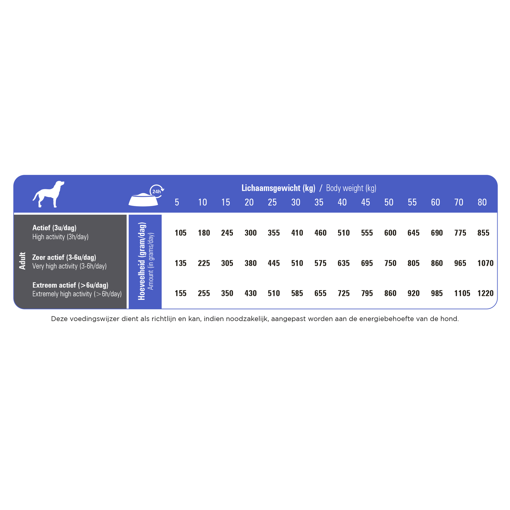ProCare Sport-Life Excellent е високoенергийна пресована храна, създадена специално за активно трениращи кучета, участващи в спортове като аджилити, каникрос и други динамични дейности. Високото съдържание на протеин и мазнини осигурява нужната енергия и издръжливост. Подходяща за кучета, които трябва да поддържат върхова форма няколко пъти седмично.
