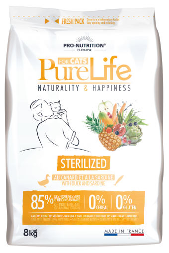 Pure Life Cat Sterilized - Храна за Кастрирани Котки с Патица и Сардини 2кг/8 кг